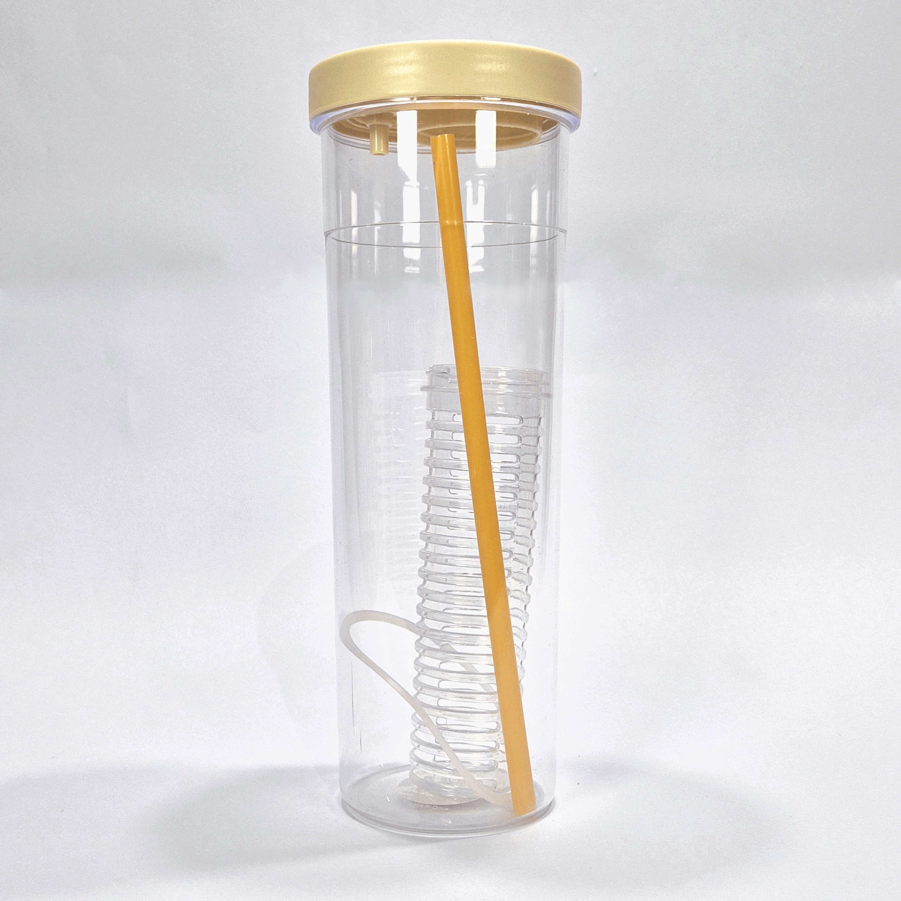 ¿Ese cilindro en el medio? ¡Es multiuso! 🧊 Podés usarlo para poner hielo y mantener tu bebida fría por más tiempo, para separar pulpa o frutas, o incluso para preparar cold brew o infusiones frías.