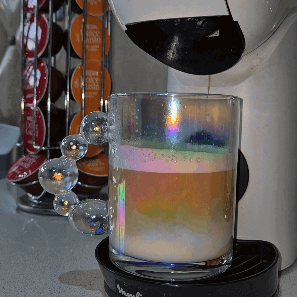 ¿Café con estilo? ¿Té con buena vibra? Esta taza de vidrio iridiscente es una joyita de diseño que transforma cualquier bebida en una experiencia aesthetic 🌟 Es de esas tazas que una vez que la tenés... ya no querés usar otra. Minimalista, mágica y con toda la personalidad.