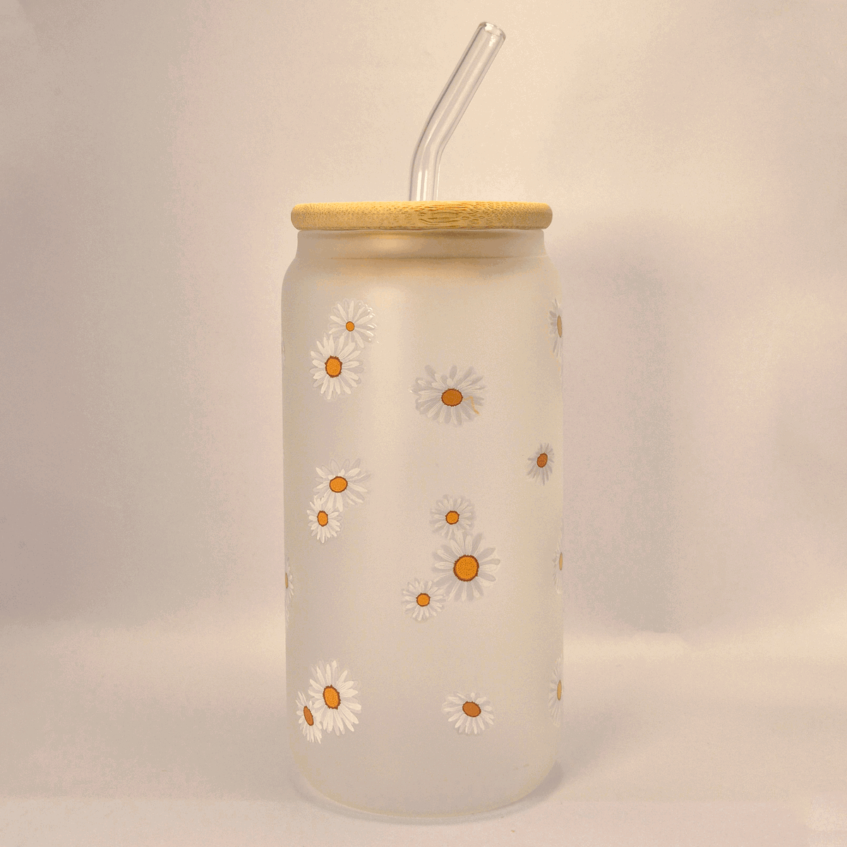 Este vaso tipo lata es tan lindo como funcional. Hecho en vidrio esmerilado con diseño estampado, incluye tapa de bambú y bombilla de vidrio para que cada bebida se vea y se sienta especial. Ideal para jugos, licuados, cafés fríos o simplemente para tenerlo siempre a mano y levantar el ánimo.