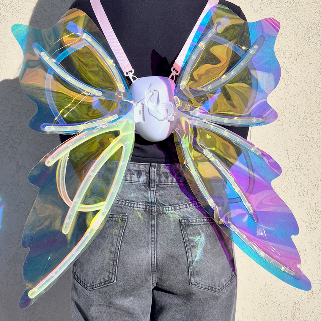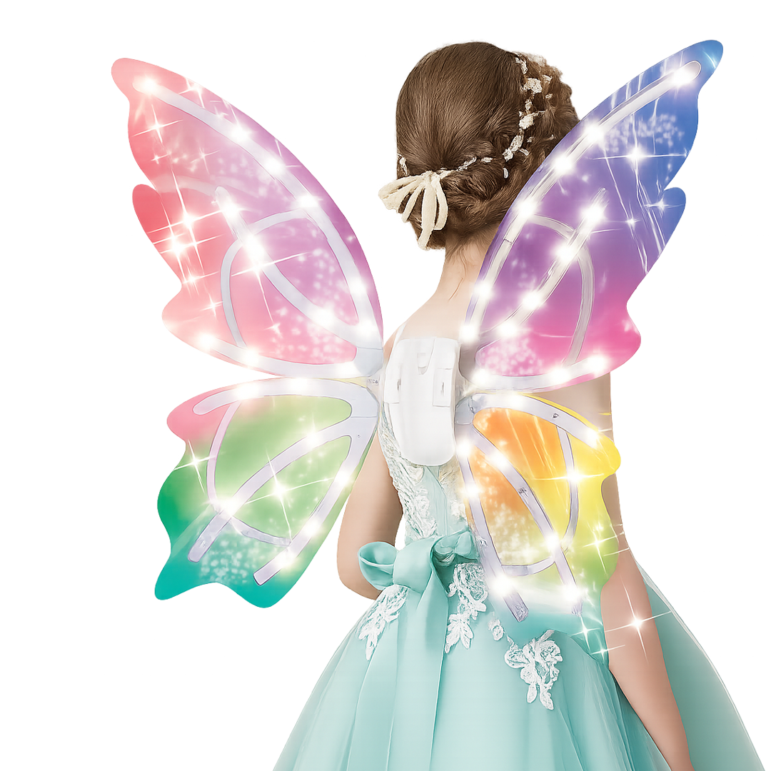 Estas alas luminosas y con movimiento son el accesorio perfecto para fiestas, juegos, disfraces o simplemente para dejar volar la imaginación. Gracias a su motor integrado, se mueven de verdad al ritmo de la música o con solo presionar un botón. ¡Sí, leíste bien!