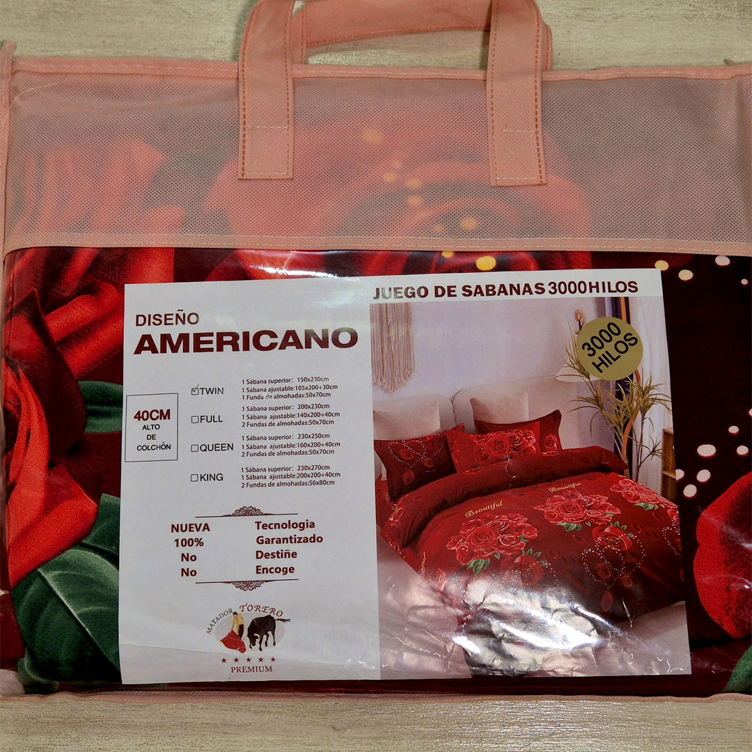 Juego de Sabanas Twin Rosas Rojas