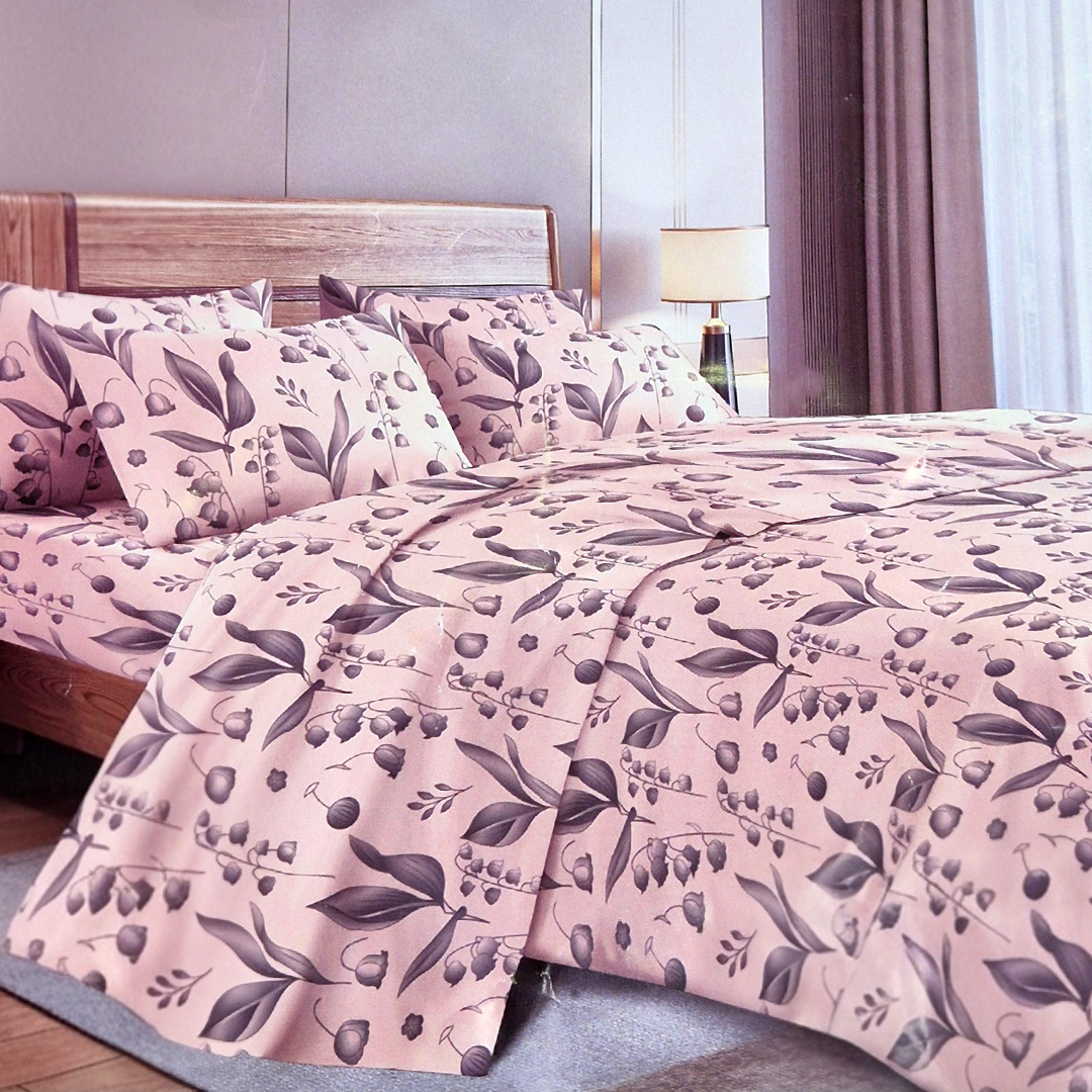 Juego de Sabanas King Rosa y Hojas