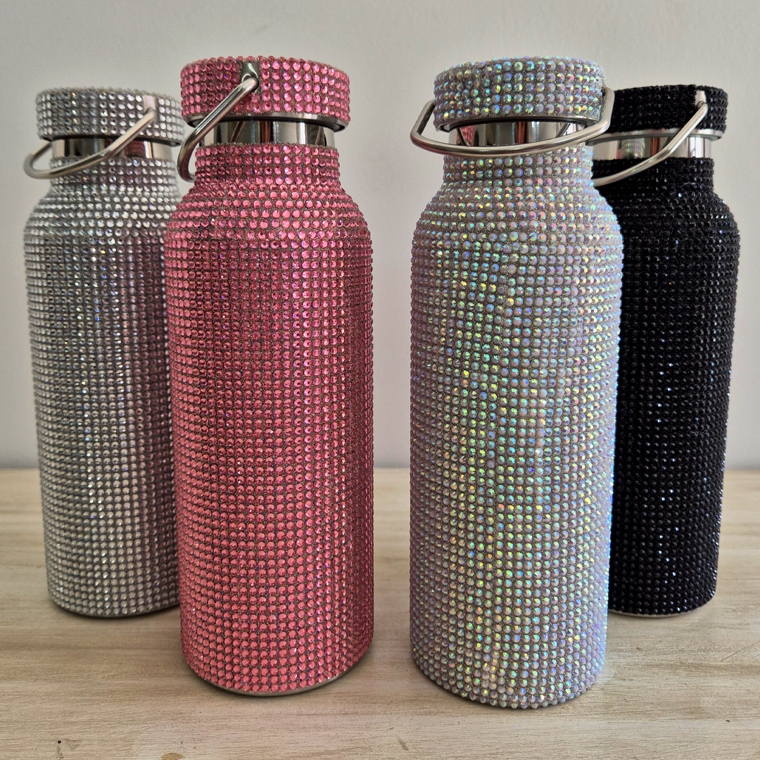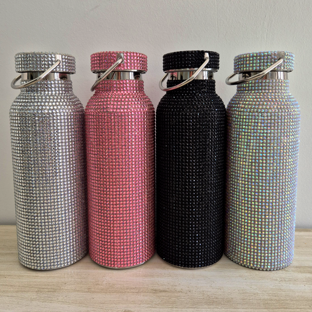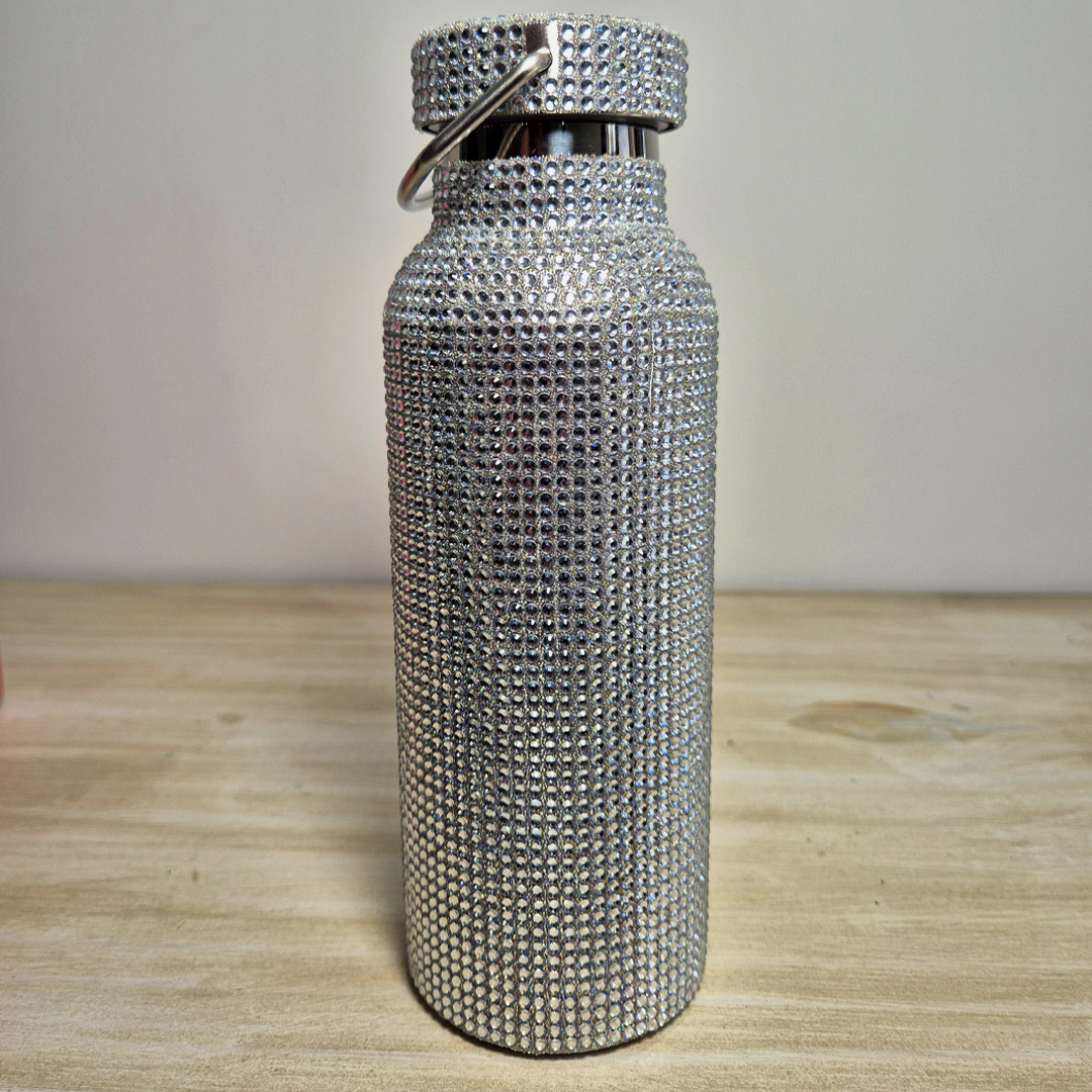Si sos de las que no pasa desapercibida, esta botella es hecha para vos. Forrada completamente en strass brillantes, transforma hasta el agua más simple en un detalle lleno de glamour.